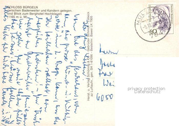 73255522 alte Postkarte Badenweiler Schloss Buergeln Fliegeraufnahme postalisch gelaufen Erhaltung siehe scans [WerneD78] KatCode: 11110008315007