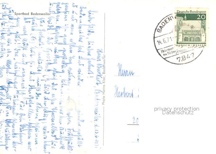 73574395 alte Postkarte Badenweiler Sportbad Freibad Kurort im Schwarzwald postalisch gelaufen Erhaltung siehe scans [FriedD77] KatCode: 11110008315007