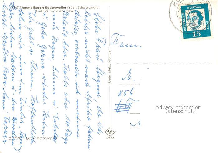73309010 alte Postkarte Badenweiler Thermalkurort Aussicht auf die Vogesen postalisch gelaufen Erhaltung siehe scans [FriedD77] KatCode: 11110008315007