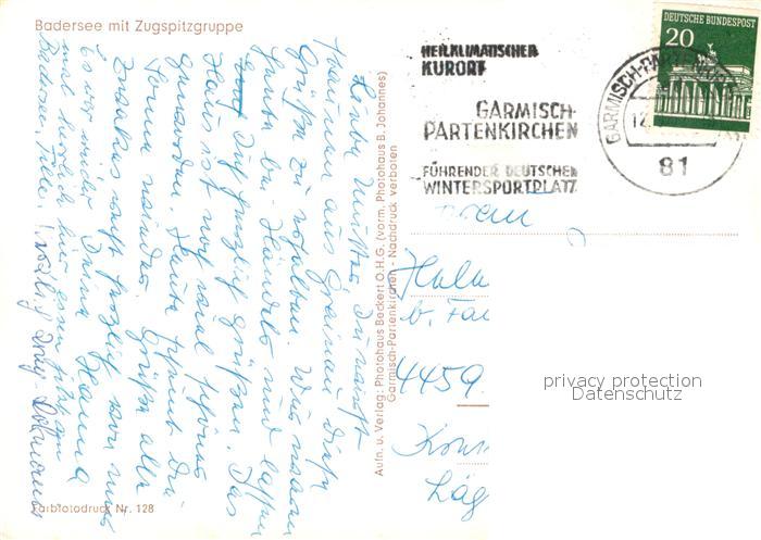 73079287 alte Postkarte Badersee Zugspitzgruppe postalisch gelaufen Erhaltung siehe scans [KathaD81] KatCode: 11110009180118