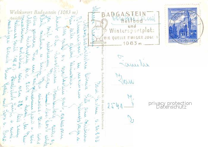 72770953 alte Postkarte Badgastein postalisch gelaufen Erhaltung siehe scans [NatalD47] KatCode: 11390