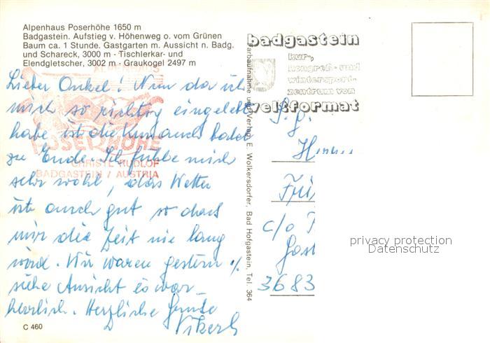 73089142 Badgastein Alpenhaus Poserhoehe postalisch nicht gelaufen Erhaltung siehe scans [PaolaD17] KatCode: 11390