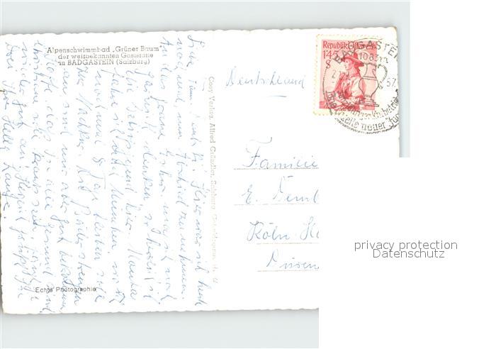 12379705 alte Postkarte Badgastein Alpenschwimmbad Gruener Baum postalisch gelaufen Erhaltung siehe scans KatCode: 11390