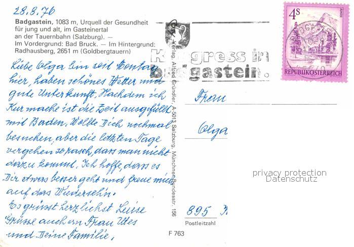 72896822 alte Postkarte Badgastein Bad Bruck Radhausberg Goldbergtauern postalisch gelaufen Erhaltung siehe scans [KathaD81] KatCode: 11390
