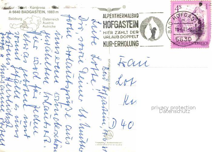 72666117 alte Postkarte Badgastein Badbruck Fliegeraufnahme postalisch gelaufen Erhaltung siehe scans [WerneD78] KatCode: 11390