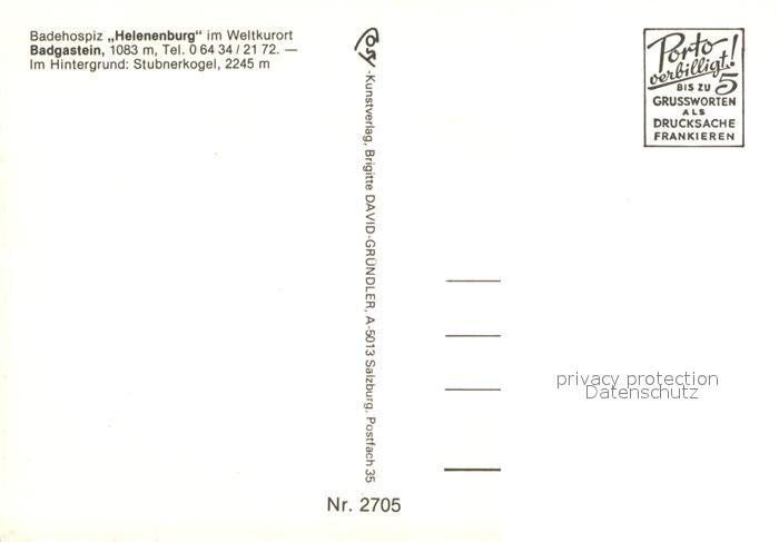 12973051 Badgastein Badehospiz Helenenburg postalisch nicht gelaufen Erhaltung siehe scans [NatalD47] KatCode: 11390