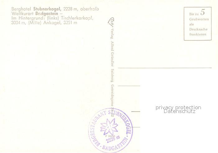 13221080 Badgastein Berghotel Stubnerkogel postalisch nicht gelaufen Erhaltung siehe scans [LiesaD40] KatCode: 11390