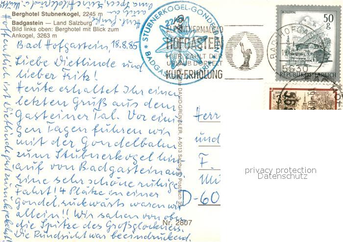 73244178 alte Postkarte Badgastein Berghotel-Stubnerkogel Seilbahn postalisch gelaufen Erhaltung siehe scans [LiesaD40] KatCode: 11390