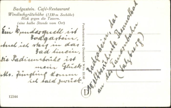 10873751 Badgastein Cafe Restaurant Windischgrätzhöhe * KatCode 11390