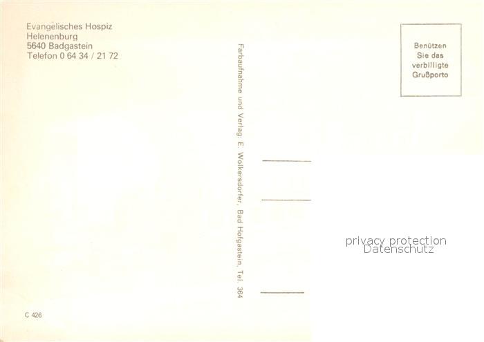 12990097 Badgastein Evangelisches Hospiz Helenenburg postalisch nicht gelaufen Erhaltung siehe scans [NatalD47] KatCode: 11390