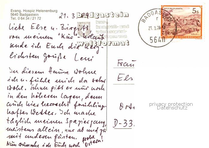 72863538 alte Postkarte Badgastein Evangelisches Hospiz Helenenburg Winterpanorama Alpen postalisch gelaufen Erhaltung siehe scans [FriedD77] KatCode: 11390