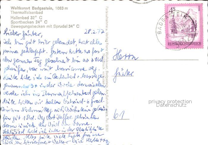 71909636 alte Postkarte Badgastein Felsenbad postalisch gelaufen Erhaltung siehe scans KatCode: 11390