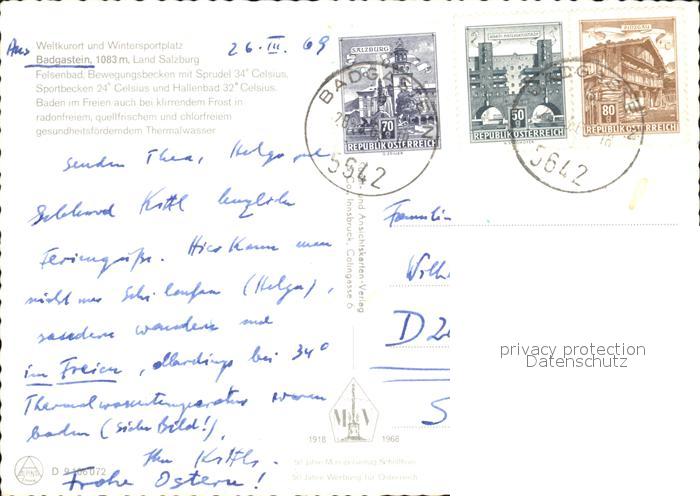 72512870 alte Postkarte Badgastein Felsenbad Bewegungsbecken mit Sprudel postalisch gelaufen Erhaltung siehe scans KatCode: 11390