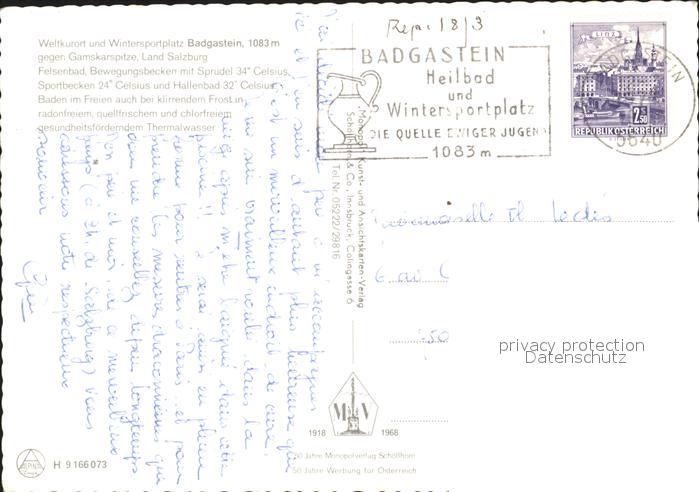 71834993 alte Postkarte Badgastein Felsenbad Heilbad Wintersportplatz postalisch gelaufen Erhaltung siehe scans KatCode: 11390