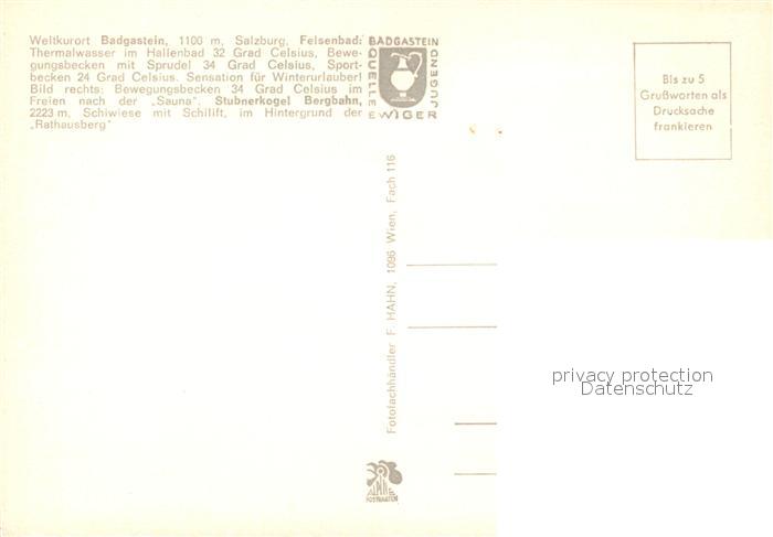 73324128 Badgastein Felsenbad postalisch nicht gelaufen Erhaltung siehe scans [PaolaD17] KatCode: 11390