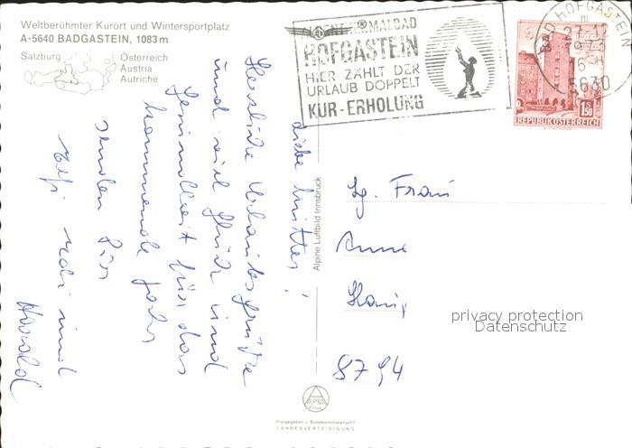 72054842 alte Postkarte Badgastein Fliegeraufnahme Graukogel postalisch gelaufen KatCode: 11390