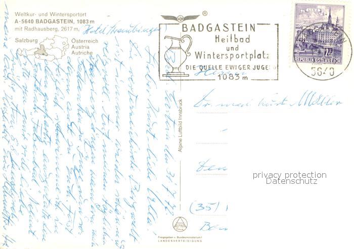 73645452 alte Postkarte Badgastein Fliegeraufnahme mit Radhausberg postalisch gelaufen Erhaltung siehe scans [WerneD78] KatCode: 11390