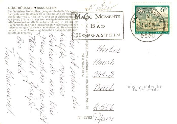 73285089 alte Postkarte Badgastein Gasteiner Heilstollen Boeckstein postalisch gelaufen Erhaltung siehe scans [NatalD47] KatCode: 11390
