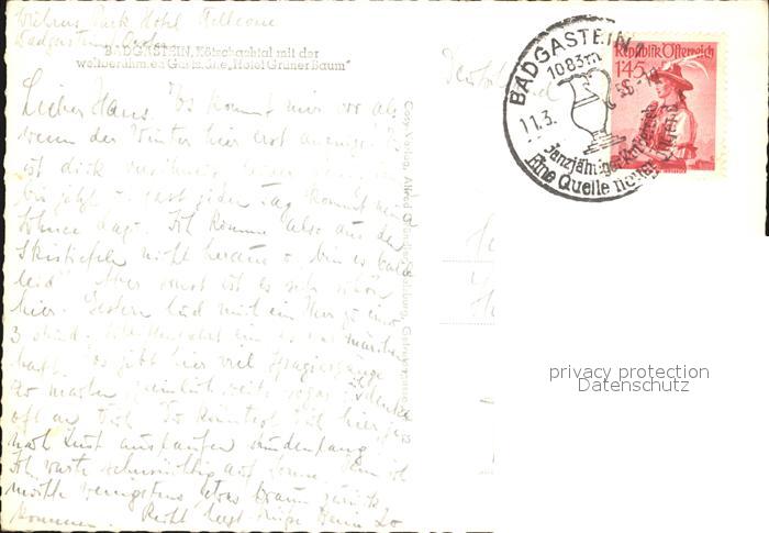 12440222 alte Postkarte Badgastein Gaststaette Hotel Gruener Baum Koetschachtal Alpenblick postalisch gelaufen Erhaltung siehe scans KatCode: 11390
