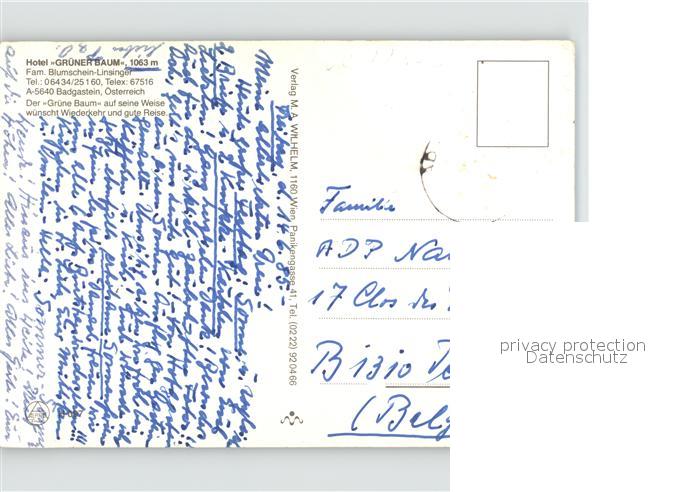 71921073 alte Postkarte Badgastein Hotel Gruener Baum postalisch gelaufen KatCode: 11390