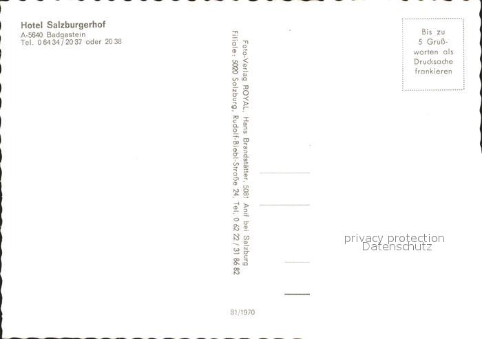 71866381 Badgastein Hotel Salzburgerhof postalisch nicht gelaufen Erhaltung siehe scans KatCode: 11390