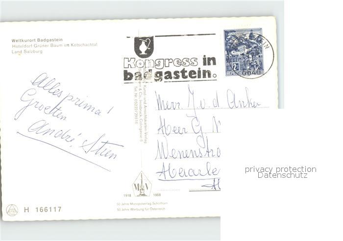 72109441 alte Postkarte Badgastein Hoteldorf Gruener Baum postalisch gelaufen KatCode: 11390