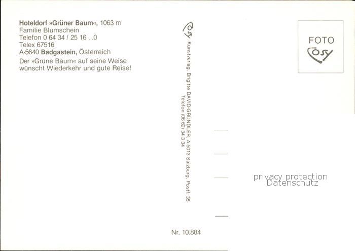 71866359 Badgastein Hoteldorf Gruener Baum postalisch nicht gelaufen Erhaltung siehe scans KatCode: 11390