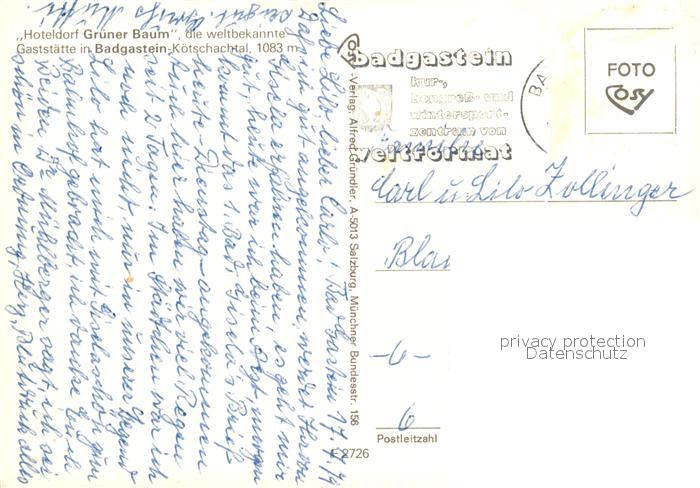73122385 alte Postkarte Badgastein Hoteldorf Gruener Baum postalisch gelaufen Erhaltung siehe scans [KathaD81] KatCode: 11390