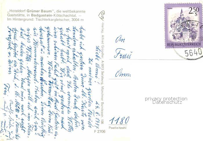 72667623 alte Postkarte Badgastein Hoteldorf Gruener Baum postalisch gelaufen Erhaltung siehe scans [AndreD76] KatCode: 11390