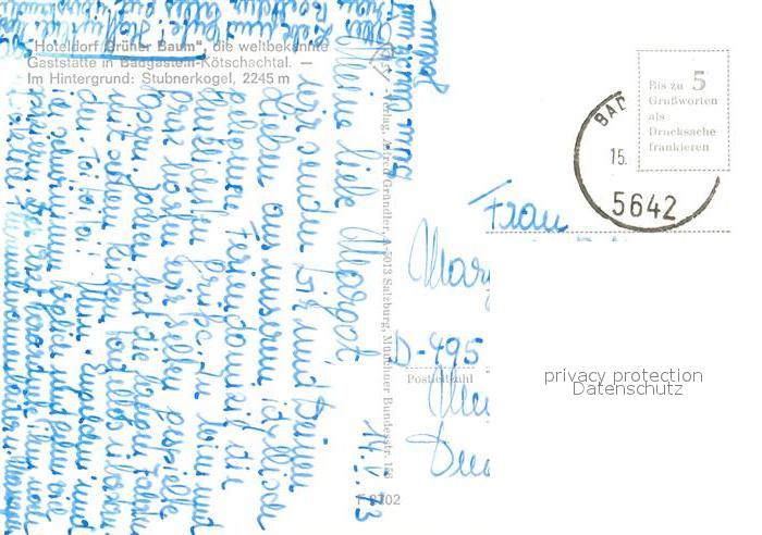 73019216 alte Postkarte Badgastein Hoteldorf Gruener Baum mit Stubnerkogel postalisch gelaufen Erhaltung siehe scans [WerneD78] KatCode: 11390