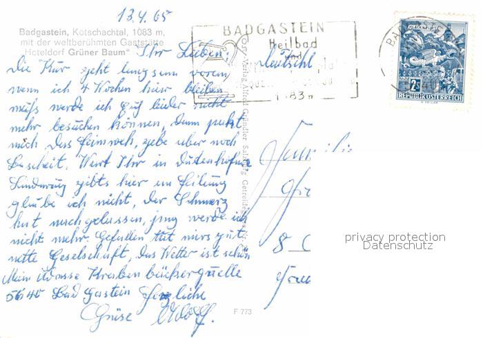 12754663 alte Postkarte Badgastein Hoteldorf Gruener Baum Schwimmbecken postalisch gelaufen Erhaltung siehe scans [AndreD76] KatCode: 11390