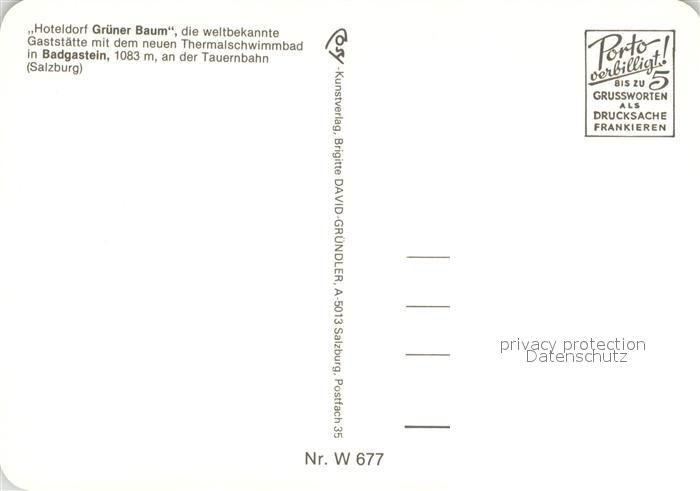 73482930 Badgastein Hoteldorf Gruener Baum Winter postalisch nicht gelaufen Erhaltung siehe scans [KathaD81] KatCode: 11390