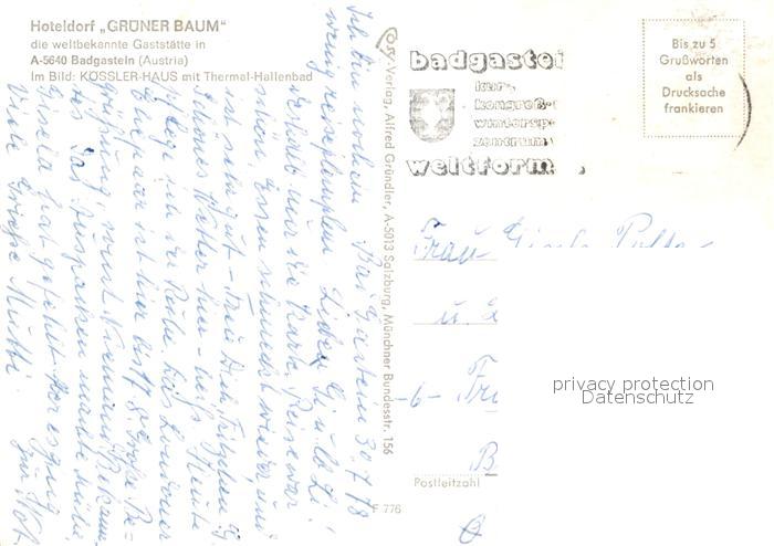 73116171 alte Postkarte Badgastein Koessler-Haus postalisch gelaufen Erhaltung siehe scans [NatalD47] KatCode: 11390
