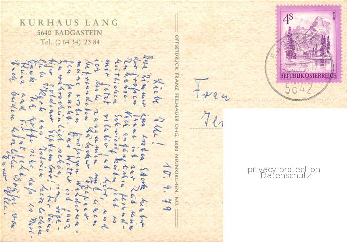 73163227 alte Postkarte Badgastein Kurhaus Lang postalisch gelaufen Erhaltung siehe scans [FriedD77] KatCode: 11390