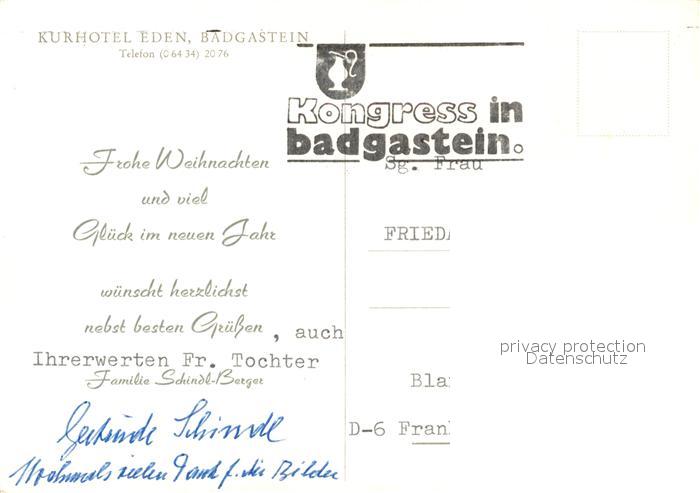 73122373 alte Postkarte Badgastein Kurhotel Eden postalisch gelaufen Erhaltung siehe scans [KathaD81] KatCode: 11390