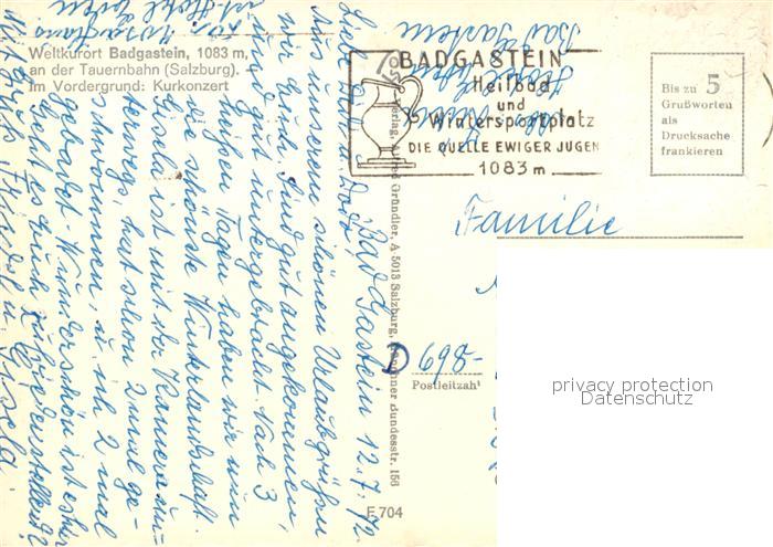 73116195 alte Postkarte Badgastein Kurkonzert postalisch gelaufen Erhaltung siehe scans [NatalD47] KatCode: 11390
