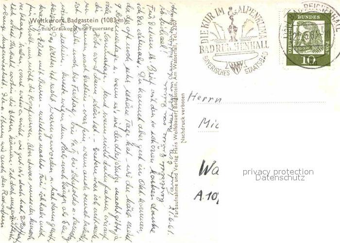 72646184 alte Postkarte Badgastein mit Graukogel und Feuersang postalisch gelaufen Erhaltung siehe scans [WerneD78] KatCode: 11390