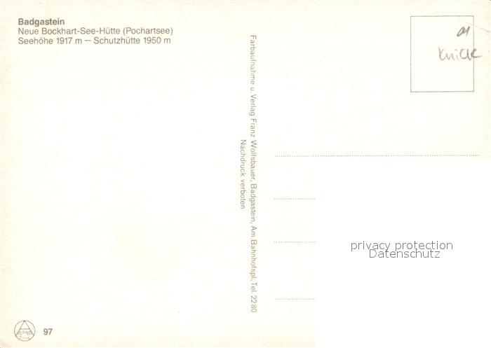 73338192 Badgastein Neue Bockhart-See-Huette Pochartsee postalisch nicht gelaufen Erhaltung siehe scans [LiesaD40] KatCode: 11390