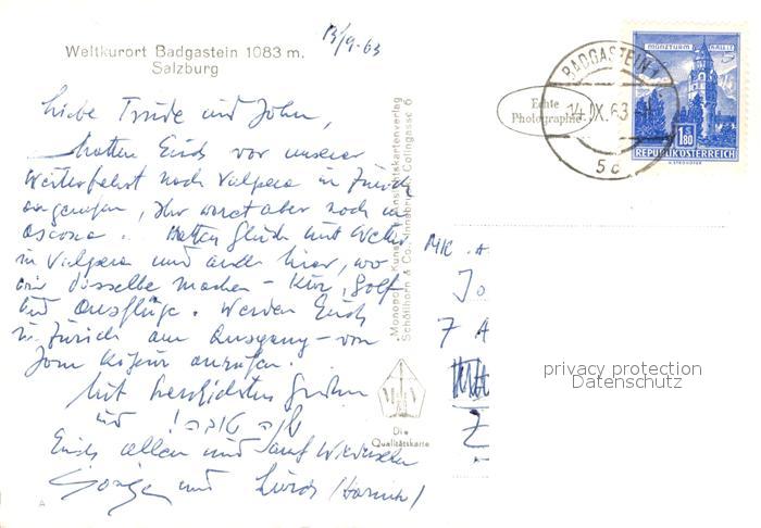 73296467 alte Postkarte Badgastein Panorama postalisch gelaufen Erhaltung siehe scans [WerneD78] KatCode: 11390