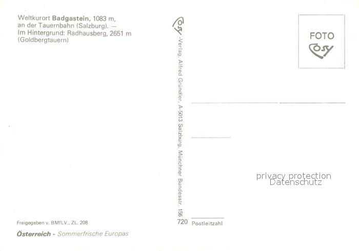 73151917 Badgastein Panorama postalisch nicht gelaufen Erhaltung siehe scans [KathaD81] KatCode: 11390