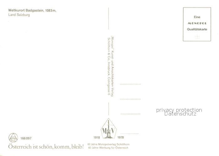 73628917 Badgastein Panorama Kurort Alpen postalisch nicht gelaufen Erhaltung siehe scans [FriedD77] KatCode: 11390