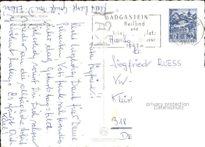 72591302 alte Postkarte Badgastein Stubnerkogel Hafnergruppe Ankogel Geiselkopf postalisch gelaufen Erhaltung siehe scans [WerneD78] KatCode: 11390