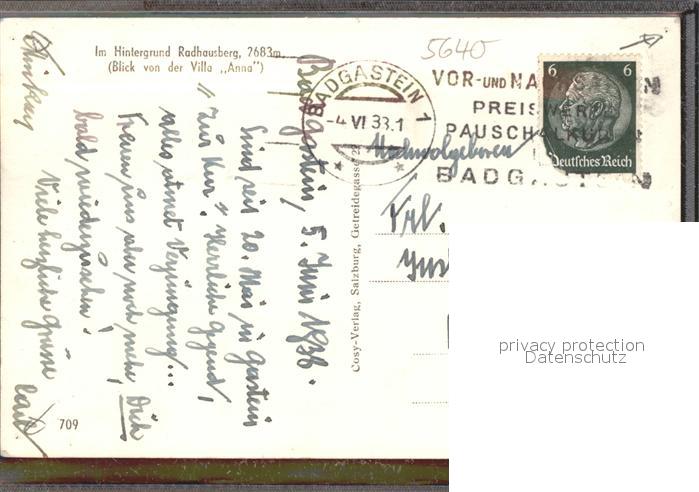 71545615 alte Postkarte Badgastein Teilansicht mit Radhausberg postalisch gelaufen Erhaltung siehe scans KatCode: 11390