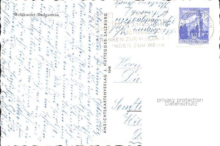 72375459 alte Postkarte Badgastein Teilansicht Weltkurort Kirche postalisch gelaufen Erhaltung siehe scans KatCode: 11390