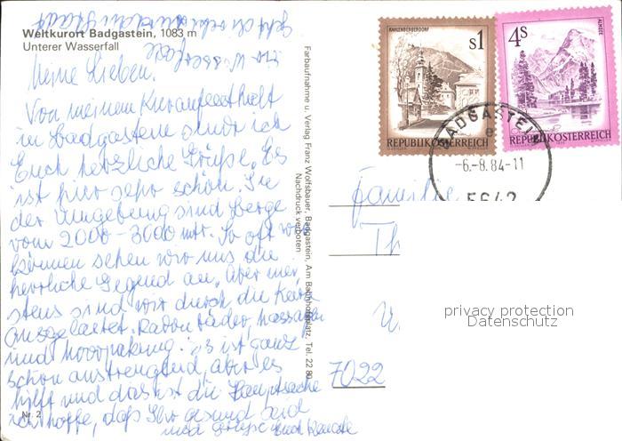72516605 alte Postkarte Badgastein Unterer Wasserfall postalisch gelaufen Erhaltung siehe scans KatCode: 11390