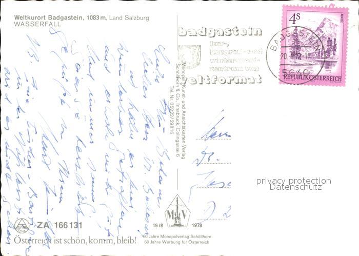 72391122 alte Postkarte Badgastein Wasserfall postalisch gelaufen Erhaltung siehe scans KatCode: 11390