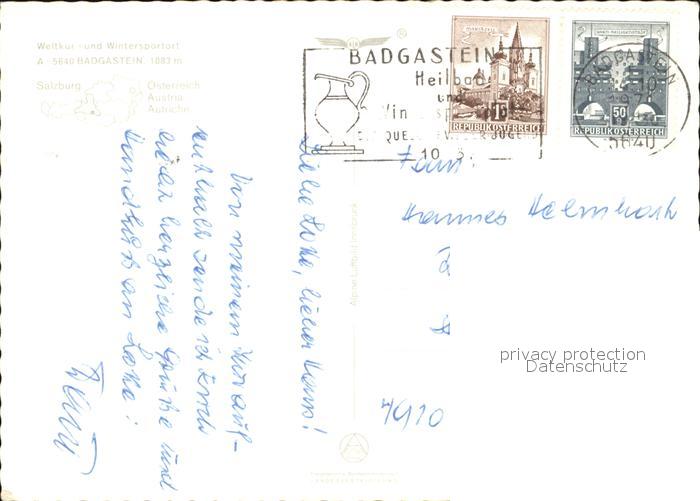 72481988 alte Postkarte Badgastein Weltkurort postalisch gelaufen Erhaltung siehe scans KatCode: 11390