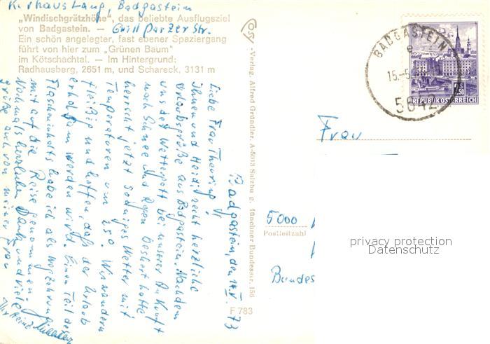 73359857 alte Postkarte Badgastein Windischgraetzhoehe Berggaststaette Terrasse Fernsicht Alpenpanorama postalisch gelaufen Erhaltung siehe scans [FriedD77] KatCode: 11390