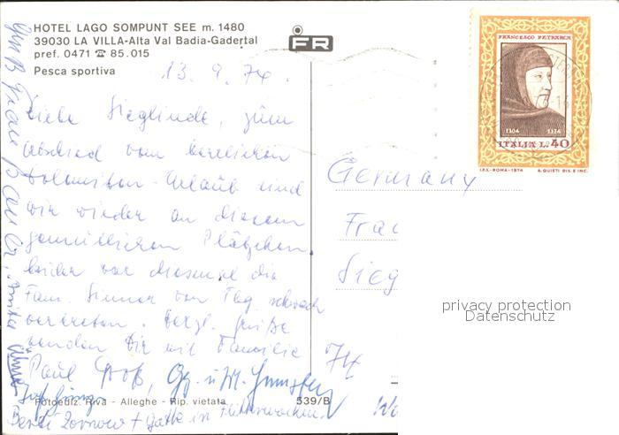 Badia di Praglia Gadtertal Hote Lago Sompundt See postalisch nicht gelaufen Erhaltung siehe scans