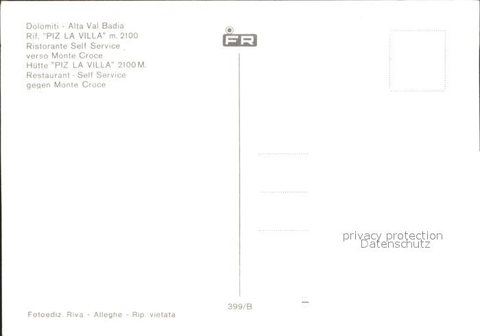 Badia di Praglia Piz La Ville Huette Skigebiet postalisch nicht gelaufen Erhaltung siehe scans